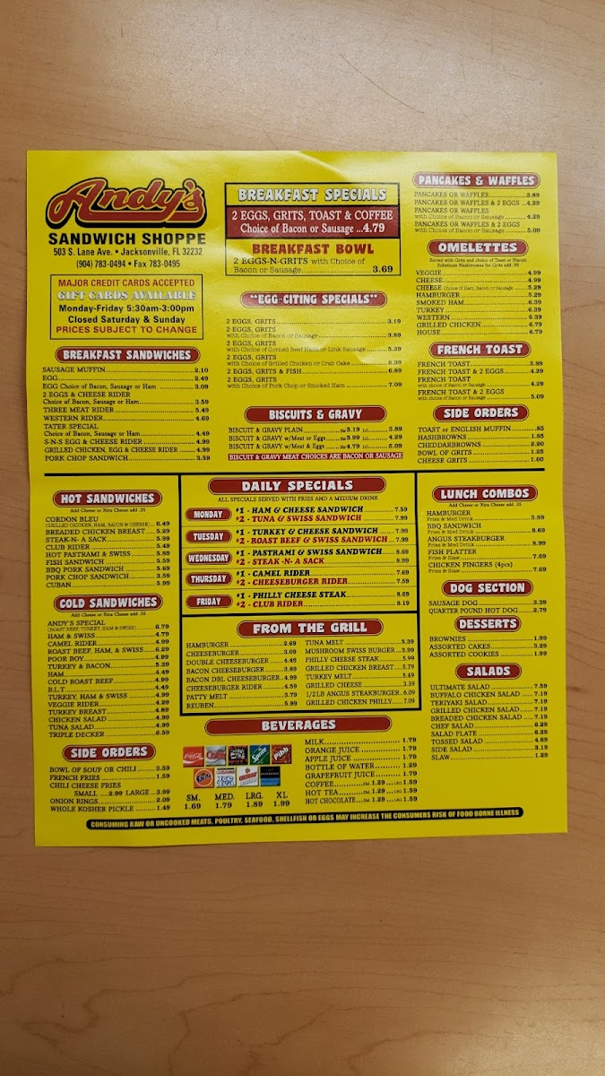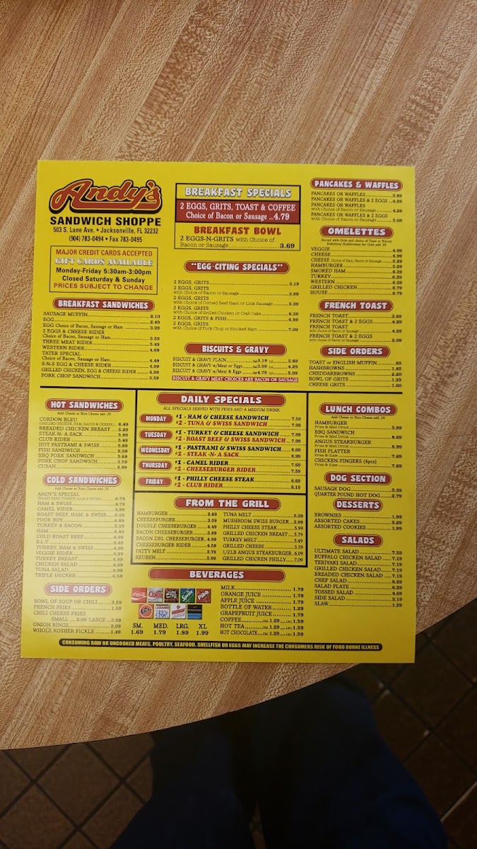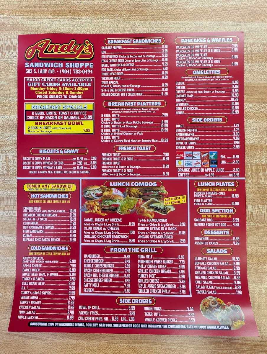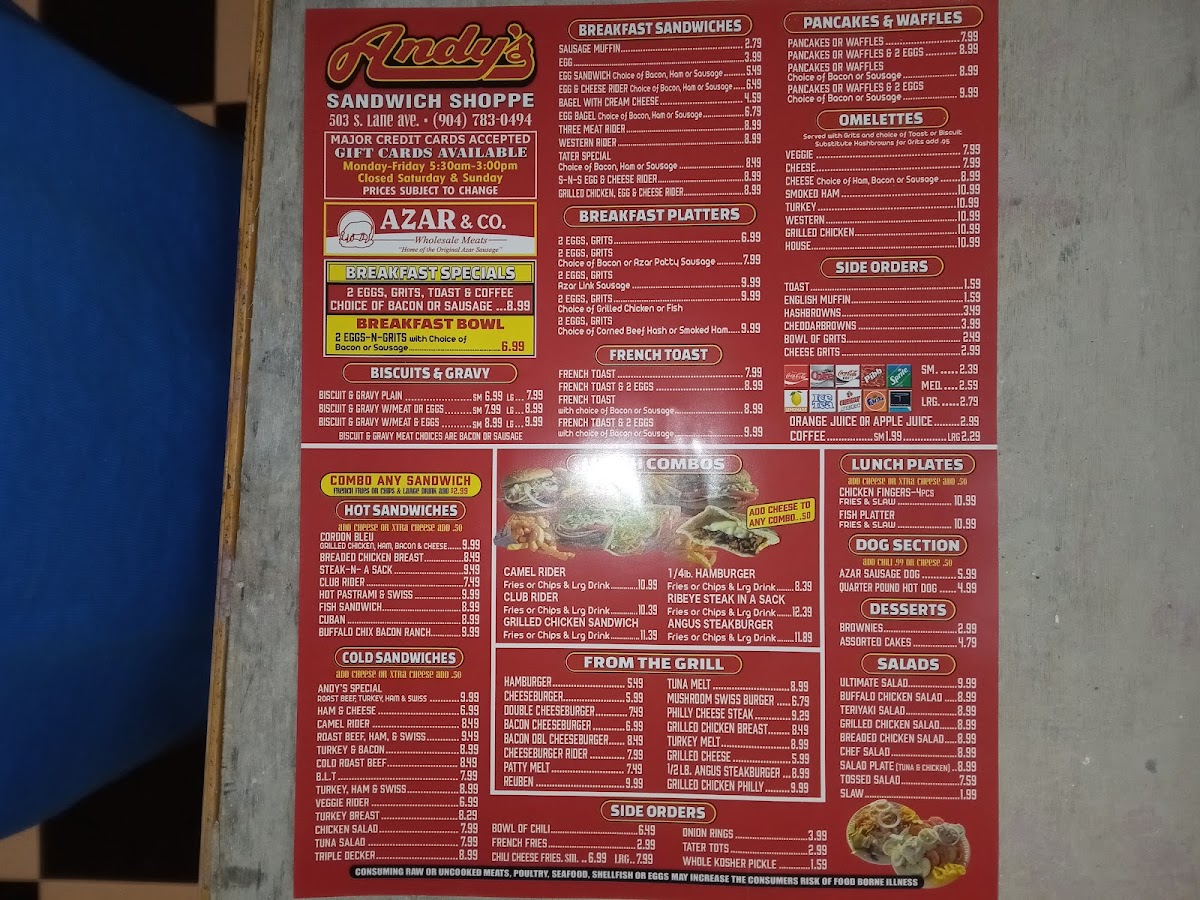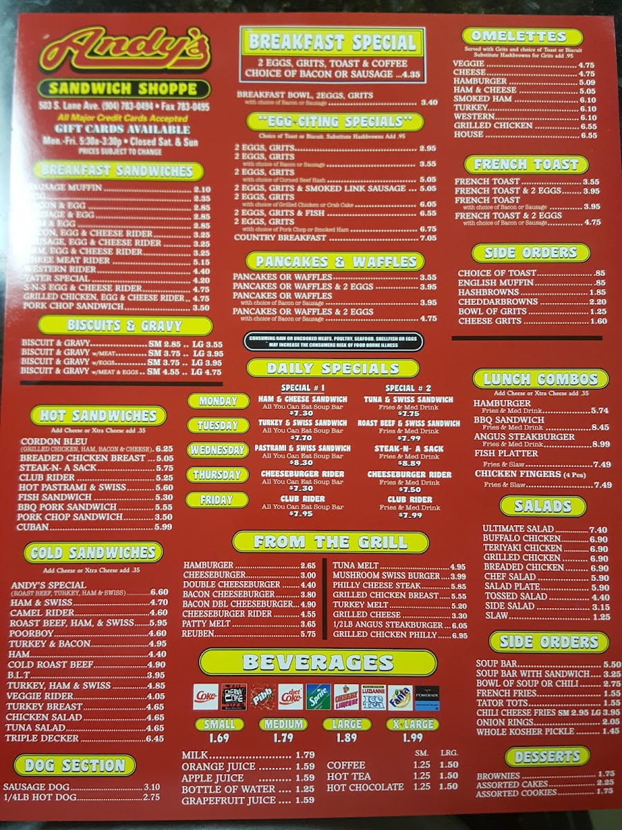 Andy's Sandwich Shoppe Menu